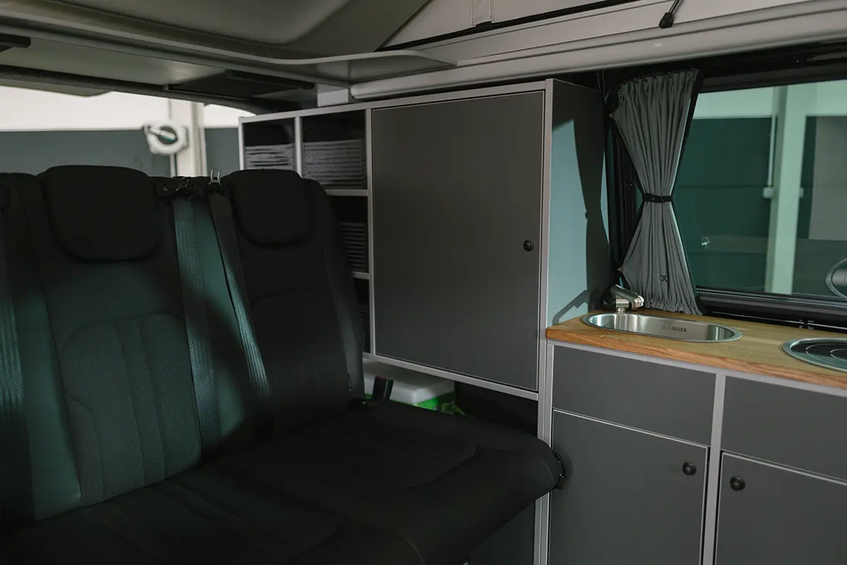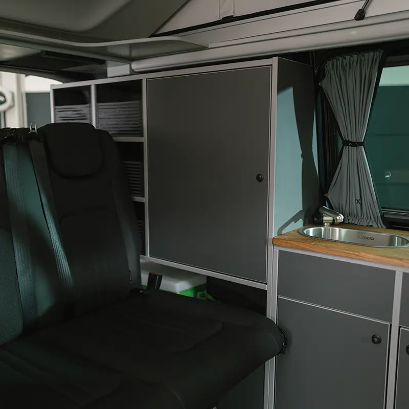 Die komplette Möbelzeile zeichnet sich durch ihr zeitloses Design aus. Und dank der vielfältigen Auswahl an Dekoren, Premium-Sitzbezügen und zahlreichem passenden Zubehör wird der Volkswagen T6.1 Camper sicherlich auch Ihrem persönlichen Geschmack gerecht.